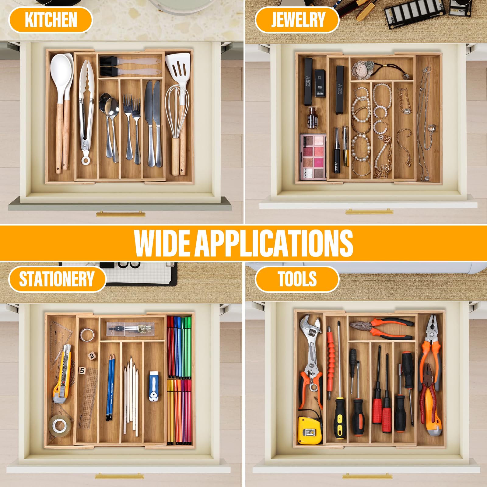• Conception Extensible et Flexible : S’ajuste facilement à la largeur de votre tiroir pour maximiser l’espace de stockage disponible et éliminer le désordre.